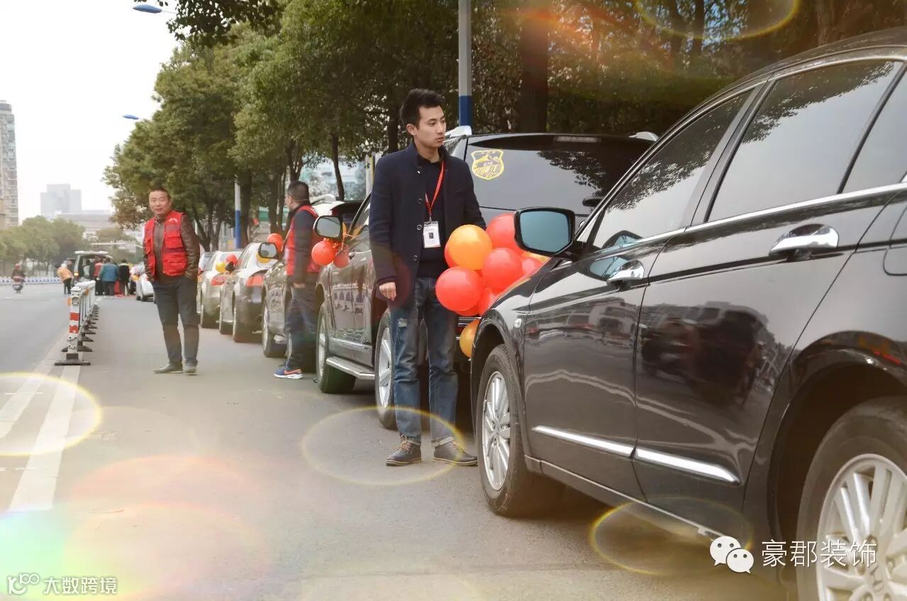 今天开工的业主高达18户,一大清早,豪郡装饰的家人们齐聚在一起,为开工盛典热情地准备着。现场有香槟、礼炮还有车队。
