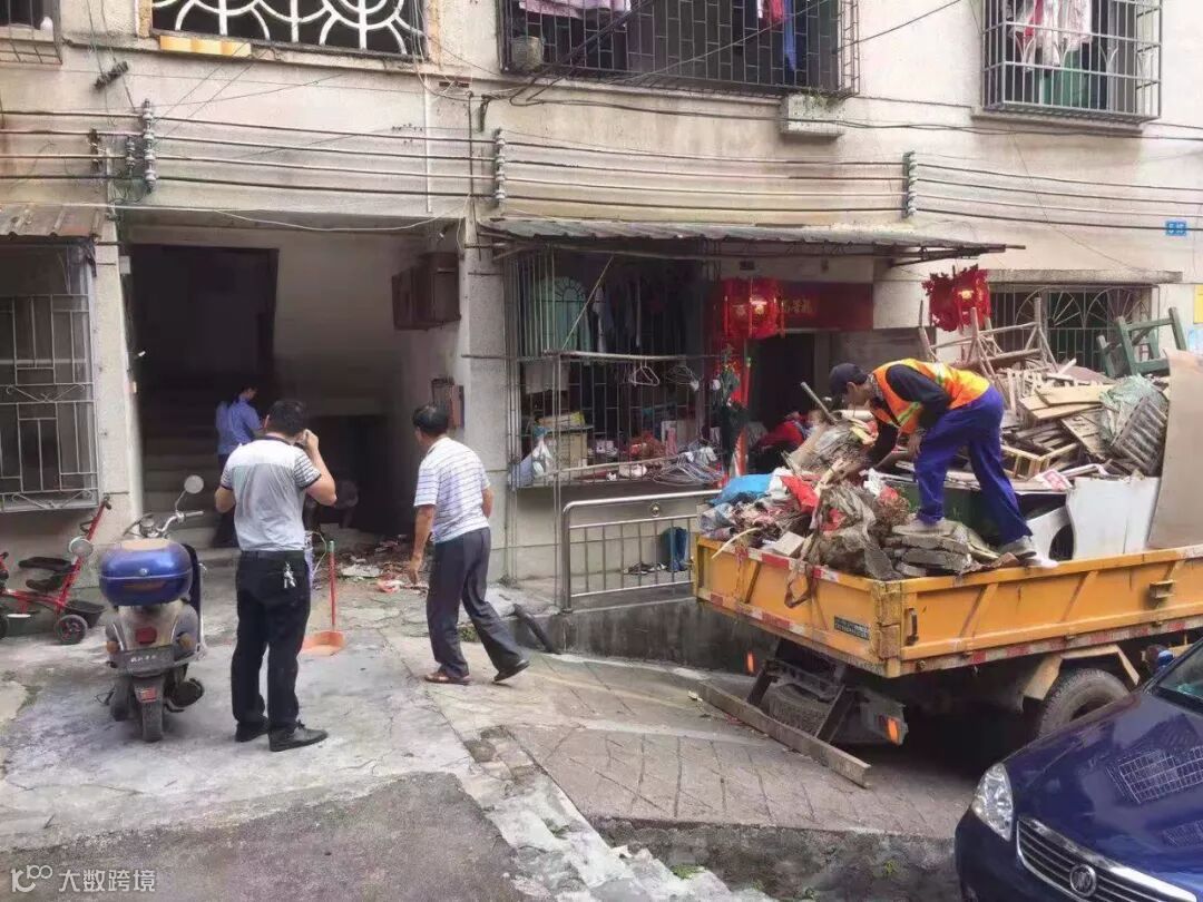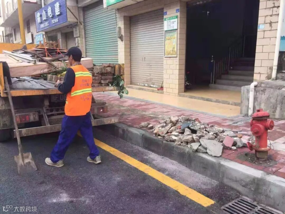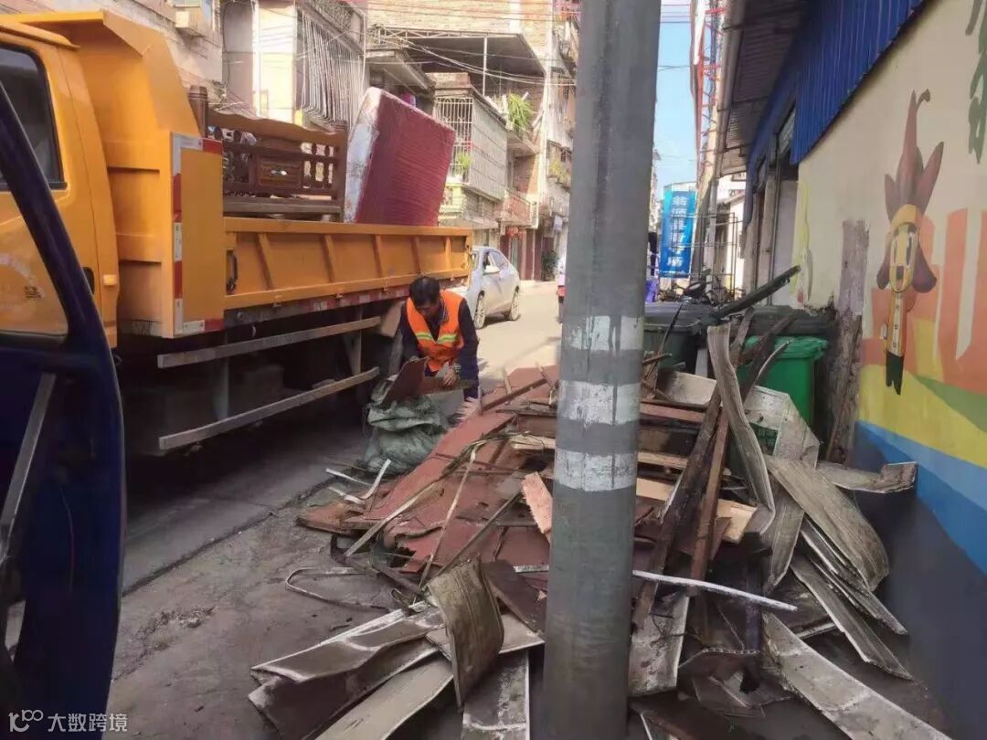2、突击队加班加点清理城区,城中村周边居民及各网格清理出路面大量建筑垃圾、树枝、废弃大件物等。
