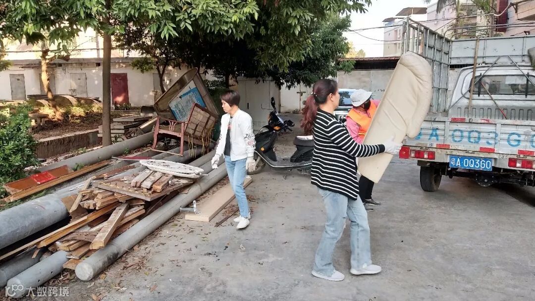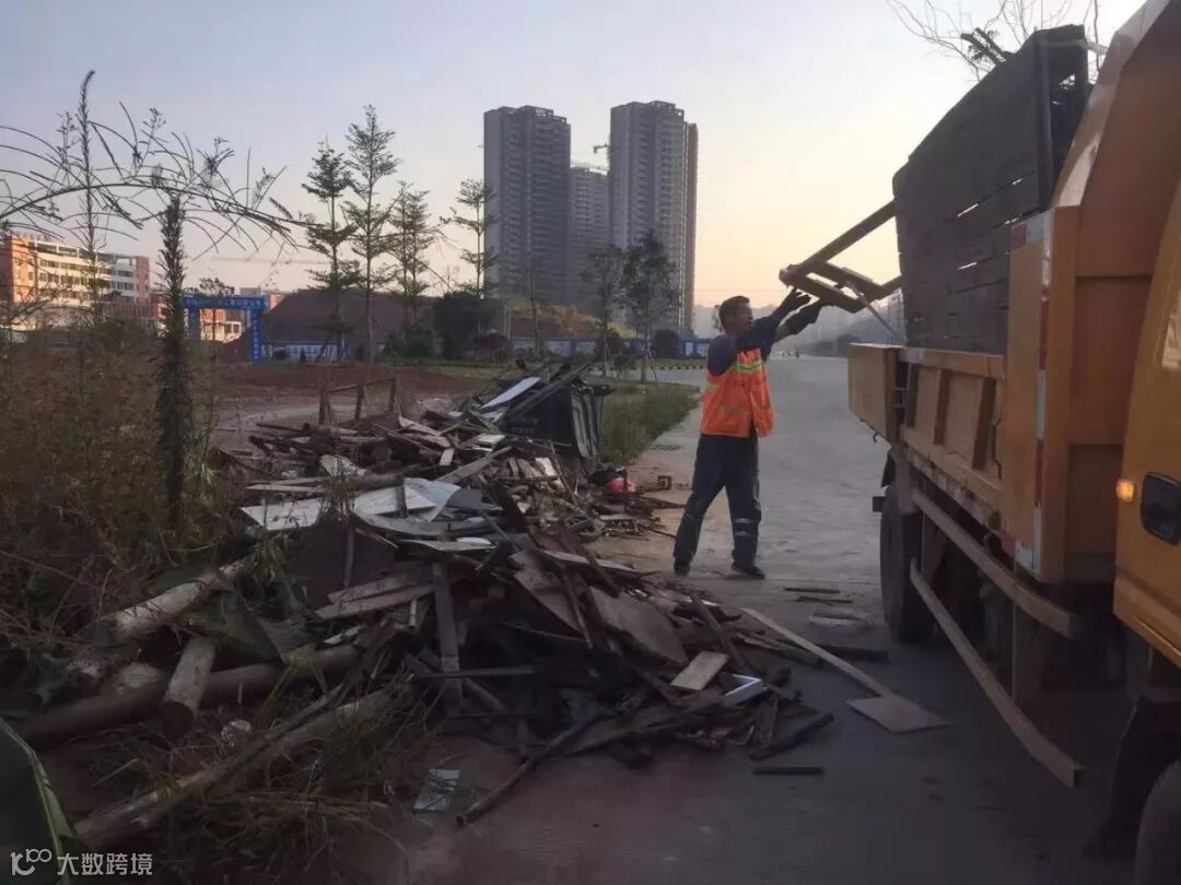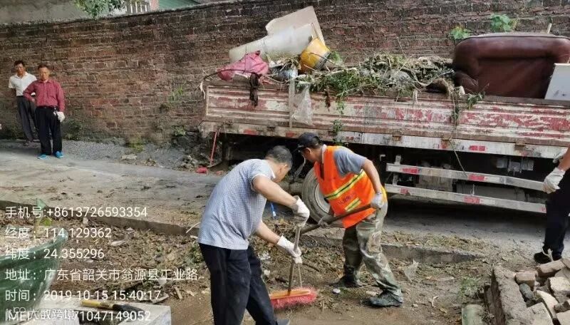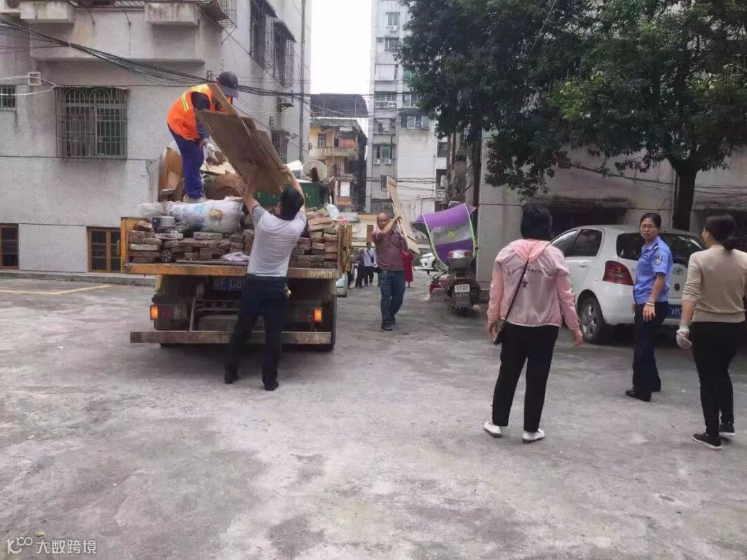 3、配合县城区域28个网格清理脏乱杂物、砖头泥沙石草,出动协助大件车辆2台、人员10位、清理车数18车,总重量49.6吨。