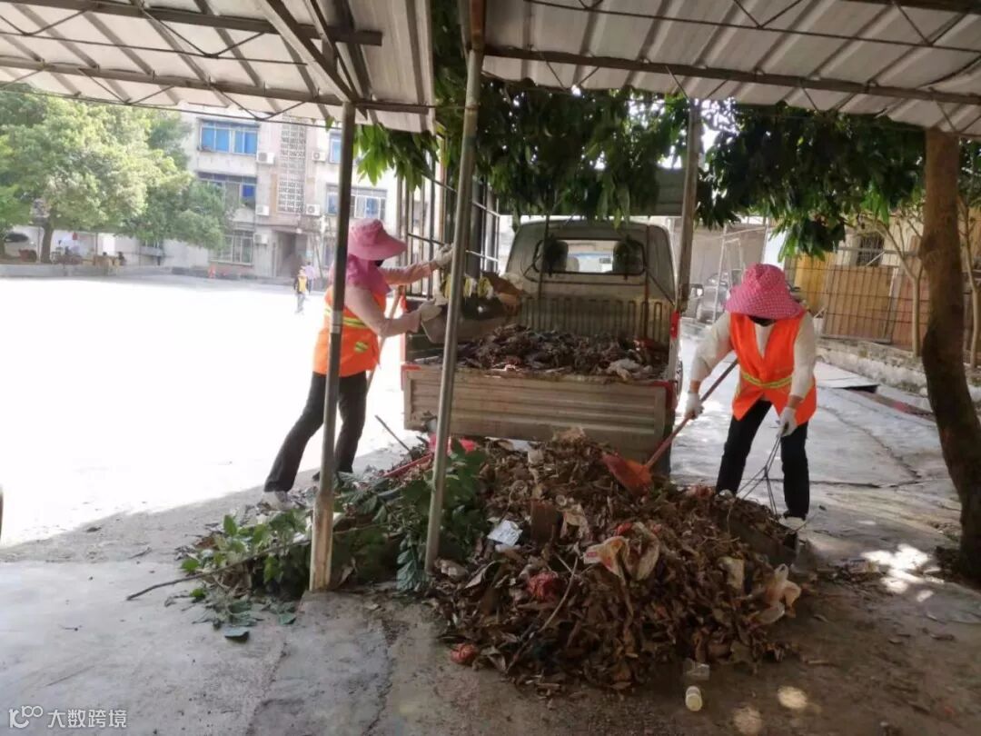 突击队加班加点清理城区,城中村周边居民及各网格清理出路面垃圾点,乱堆放大件物、砖头,泥沙、草、石头等其它杂物,出动大件清运车辆4台,出动清理人员10位、总车数137车数次、总重量425吨,拉回分类场地进破解分选不能利用废料共71车,废料重量216吨。