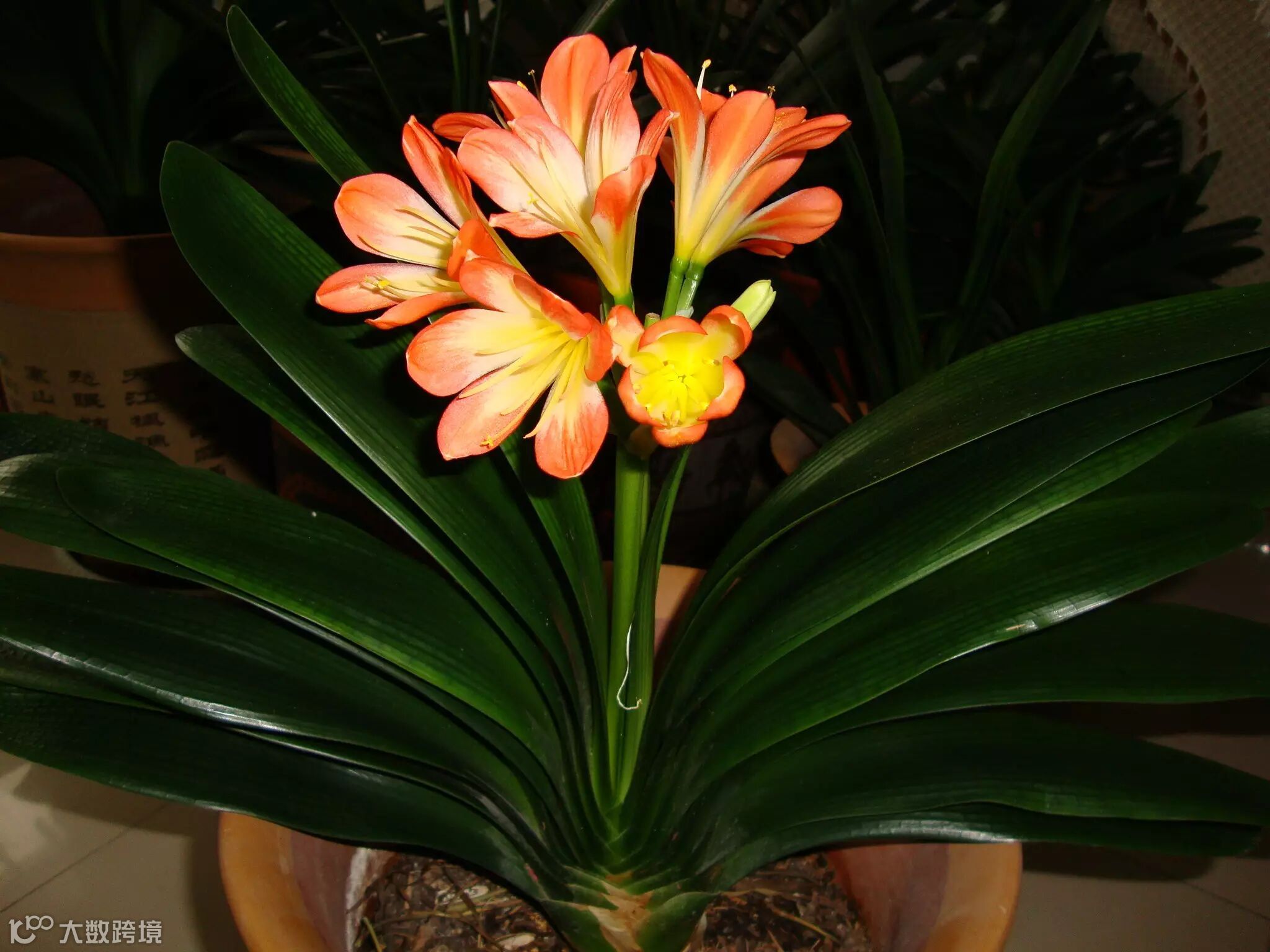 君子兰——释放氧气.吸收烟雾的清新剂。一株成年的君子兰,一昼夜能吸收1立升空气,释放80%的氧气,在极其微弱的光线下也能发生光合作用。它在夜里不会散发二氧化碳,在十几平方米的室内有两三盆君子兰就可以把室内的烟雾吸收掉,特别是北方寒冷的冬天,由于门窗紧闭,室内空气不流通,君子兰会起到很好的调节空气的作用,保持室内空气清新。