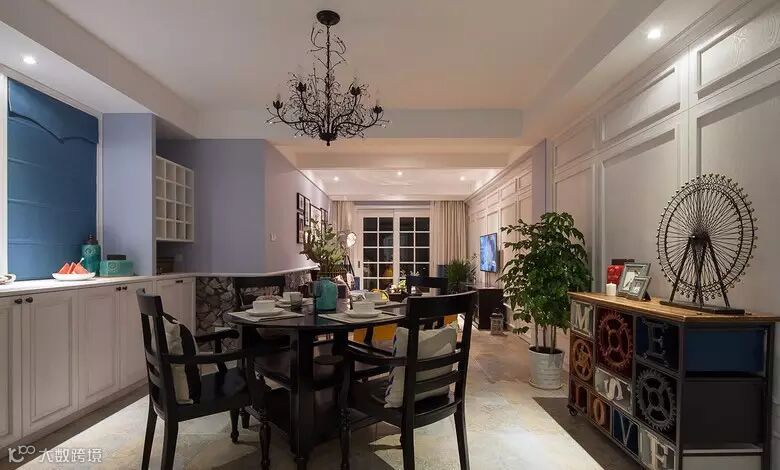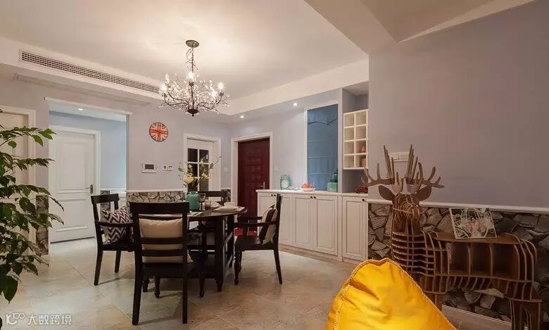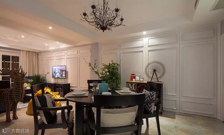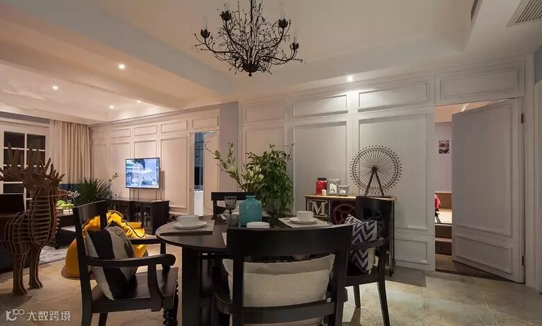 ▲ 餐厅用了圆桌,水晶灯造型也很有特色