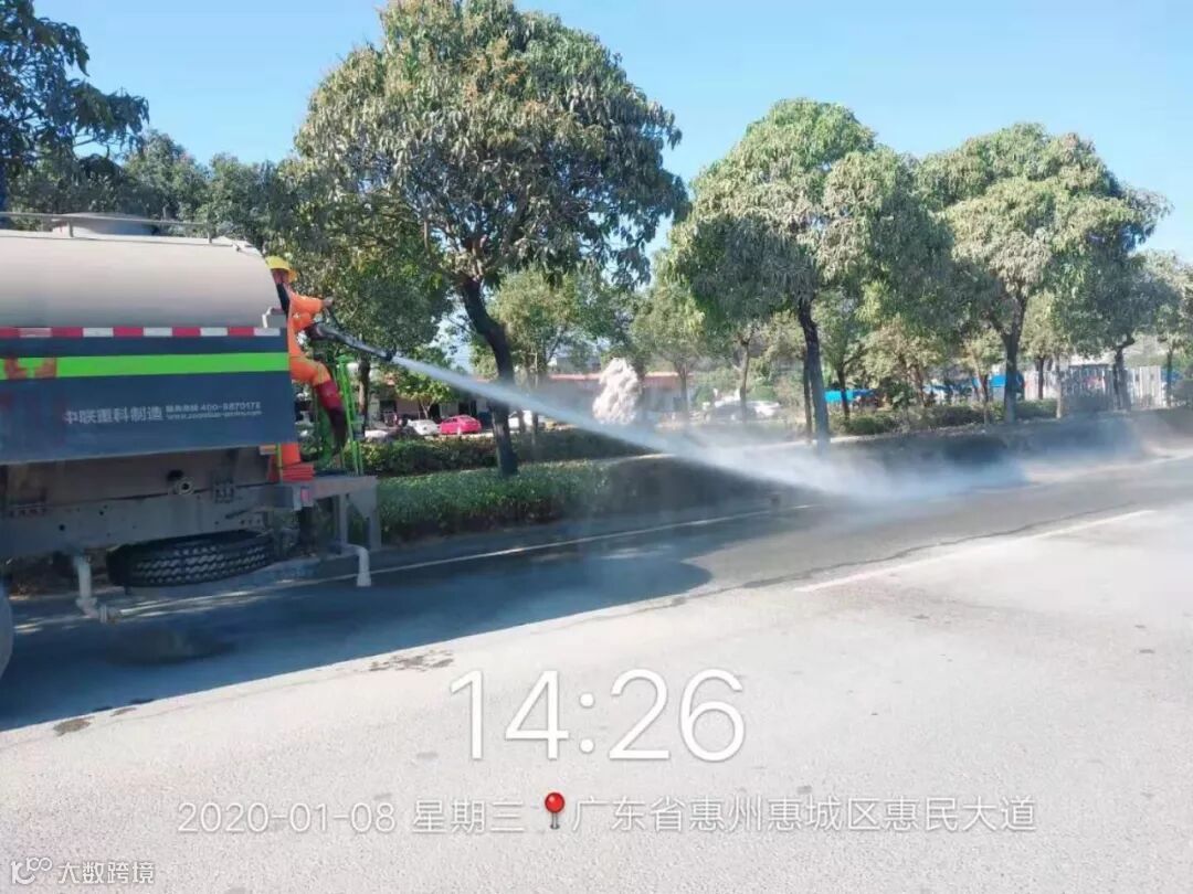 3、道路清扫、洒水,高压冲洗各垃圾桶点、广仍公路、惠州大道,菊花一路等路段;对商业步行街等人行道路段冲洗,加强城区喷雾降尘作业,应对轻度污染天气;垃圾车正常作业清运垃圾;