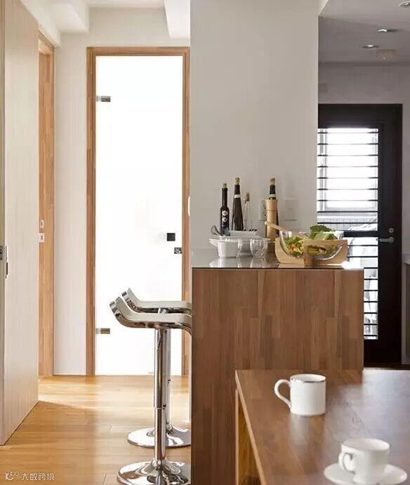 为满足风格要求,接受了开放厨房外加吧台的设计