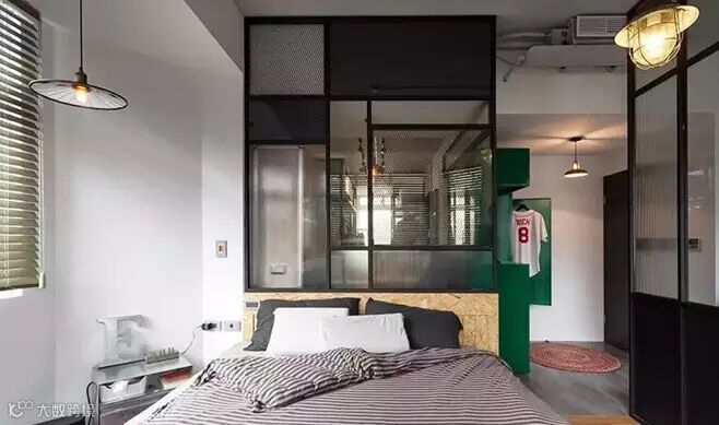 ▲ 房间之间隔间运用铁件和玻璃替代砖墙,这样可以有更多的可用面积