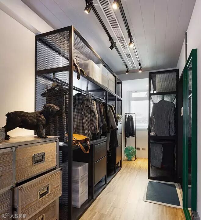 ▲ 专门一个房间做衣帽间及收纳用,铁件的柜子别有风味