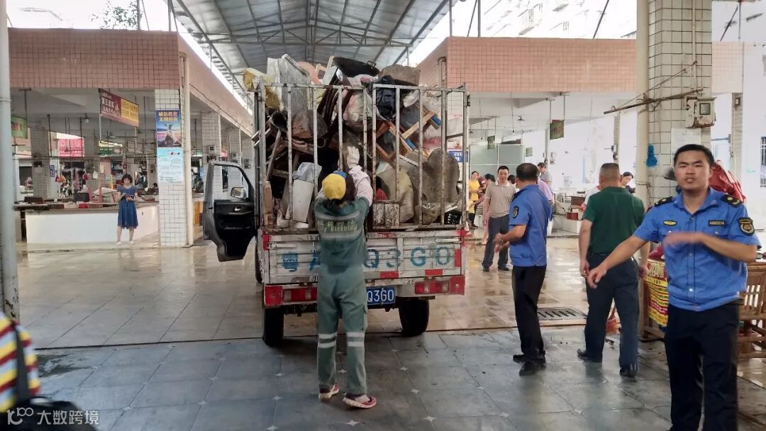 3、为迎接22号丰收节及迎接国家卫生城市复查,协助执法大队、各网格、物业总管清理清洗新旧城区门前乱堆放及市场内外环境卫生,确保新旧城区整洁、干净。