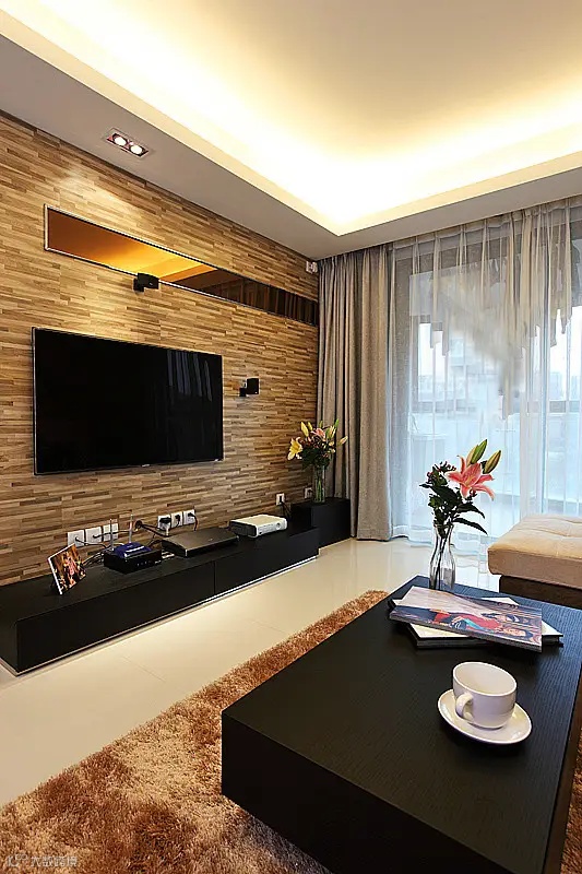 人造文化石是种新型材料,是用天然石头加工而成,色彩天然,更有隔音、阻燃等特点,适用于高挑、宽敞的空间,非常适合做电视背景墙。