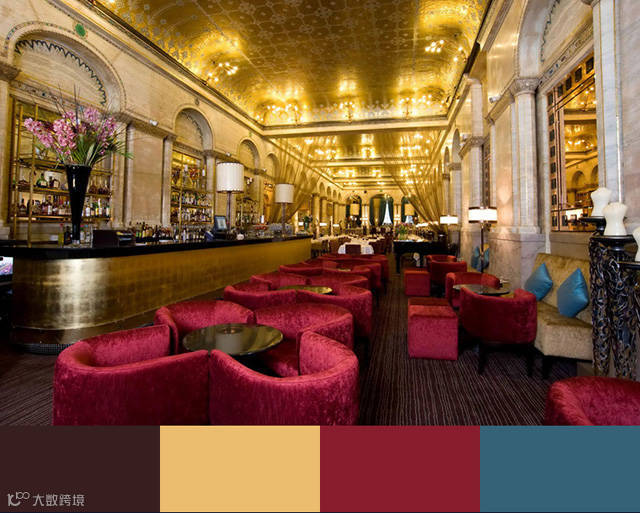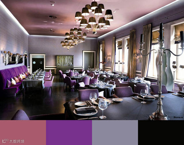在最后,我们可以看到,金色和紫色常常代表高贵奢华,金色或紫色的配色方案通常是高级餐厅在室内设计当中的最好选择。