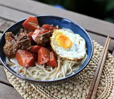 早上六点多就醒来,饿得不行。。惦记着昨晚上用铸铁锅炖的黄酒胡萝卜牛腩,决定赶紧下厨房给自己煮碗面,牛肉刚好当浇头。再煎个新鲜的土鸡蛋~