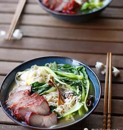 叉烧面~~面条是昨天睡前压的。早上用橄榄油轻轻将蒜茸(或葱)煸出香味,添水,把泡好的松茸撕成条放进去,水开后放面条,煮到8成熟的时候卧俩鸡蛋在抓把青菜,之后调味出锅~叉烧切好码在面上就可以了。