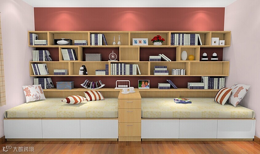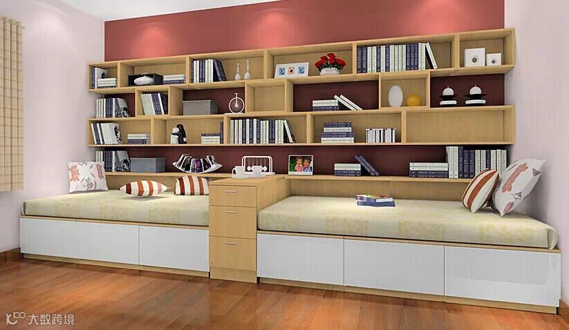 ,男生女生分开睡,妥妥滴。榻榻米的柜体也可以收纳行李。