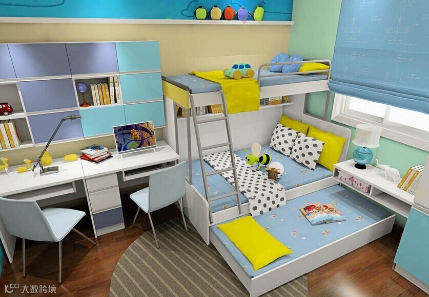 上下床再组合抽屉柜踢床,一个房间可以睡六个人,亲戚的孩子都可以一起住下。
