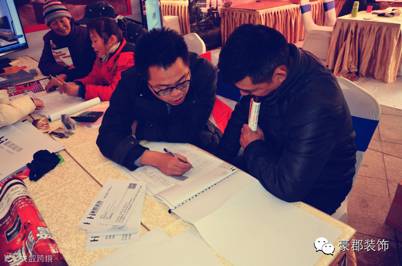 我们的设计师们也对这次的活动做了很多充足的准备,效果图、平面布置方案一应俱全,我们公司在华润国际社区是有在建工地的!所以这更加的让业主对我们豪郡装饰充满了信心与决心!