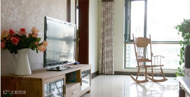 电视柜样子比较中规中矩,大抽屉有很好的收纳型呢,颜色也和电视背景墙统一了,大小正好,我个人觉得电视放在电视柜上比挂在墙上要看着舒服,而且显电视大,哈哈哈哈不知道是不是这么回事啊?远处的小摇椅绝对好单品,等会单独展示,是亮点啊!