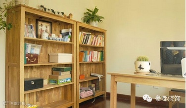 三抽床头柜很有爱很精致的小物件,刚好适合我这种不喜欢床头柜太矮的人。书房是我活动最多的地方,夫人不经常光顾,完全按照我的思路设计布置的。并排放了两个四层书柜,不要什么推拉门玻璃门的,直接敞开式的书柜,设计简单,特别有味道。摆进我常用的小物件,凌乱中显得有条有序,常青藤是可以净化空气的喔,我和夫人养的基本上全是懒人植物,哈哈哈哈哈。