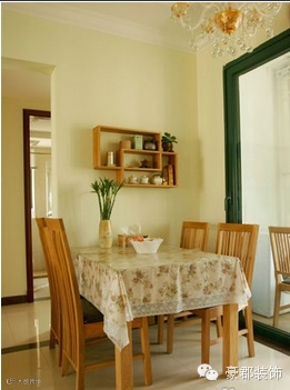 小房子面积有限,餐厅区域不大,选的餐桌是1.2m的,我觉得完全够用了,四个人甚至五个人吃饭1.2m很实用,餐椅用了两把超高背PU革椅,两把弯背PU革椅,这样的搭配肿么样?餐厅墙用的双环CD古董置物架做装饰,摆上小物件之后出效果了。