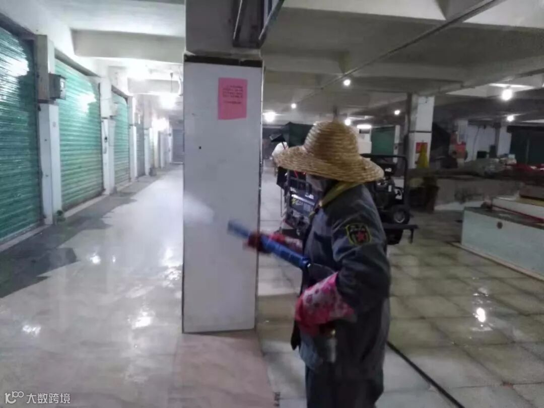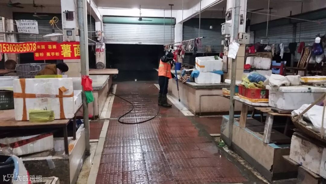夜间配合市场管理站对市场进行一日一冲洗消杀