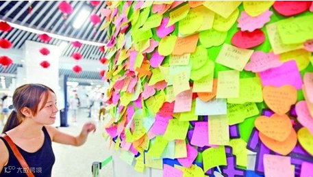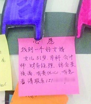 但是大妈您觉得,这婚姻大事,一个便利贴便能寻得良缘么,哪位优秀才俊敢把幸福寄托在您这一个小小的心愿贴呢~!你贴的时候不看看边上的高薪求子的广告么~!
