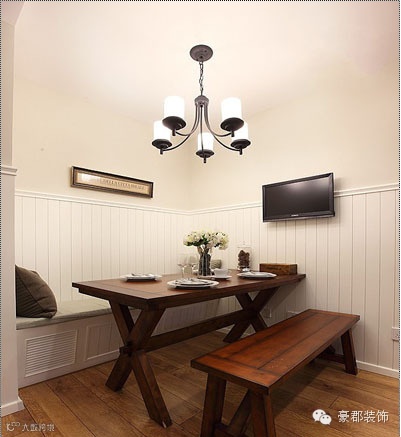 这里还有个餐厅,设有一个大大的卡座,呵呵实木的餐桌、餐椅十分的潮流时尚,简单又大方额!