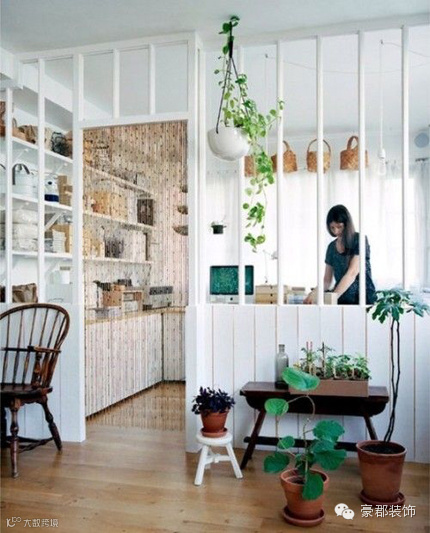 悬挂式的植物非常和谐的作为空间的分隔,灵活的设计可以非常简单的放置在阳光明媚的空间,然后填充不同的植物,这样的选择无疑是既美观又能品味到植物的美味。