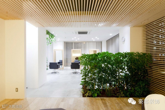 在这个现代化的办公空间中,植物和沙发共同扮演分隔空间的角色,高低错落的植物设置在沙发后面。