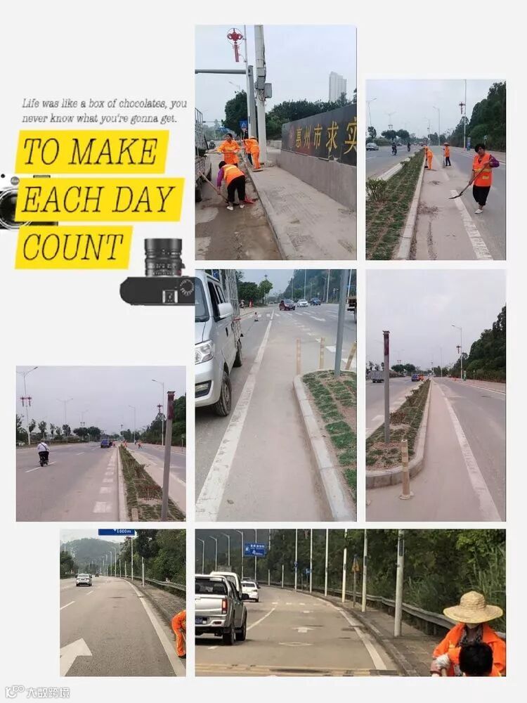 5、机动保洁队伍对辖区惠民大道、惠州大道、惠博大道、三环路的道路两侧边沙、淤泥,人行道上的杂草进行彻底铲除。