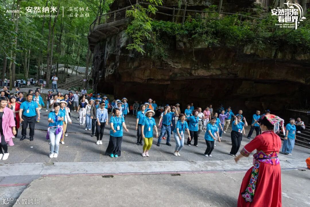 寻宝第三站,在这里等待着伙伴们的是穿着裙装的苗族姑娘,为大家带来“摆手舞”的表演,伙伴们被音乐和舞蹈感染,纷纷起舞。