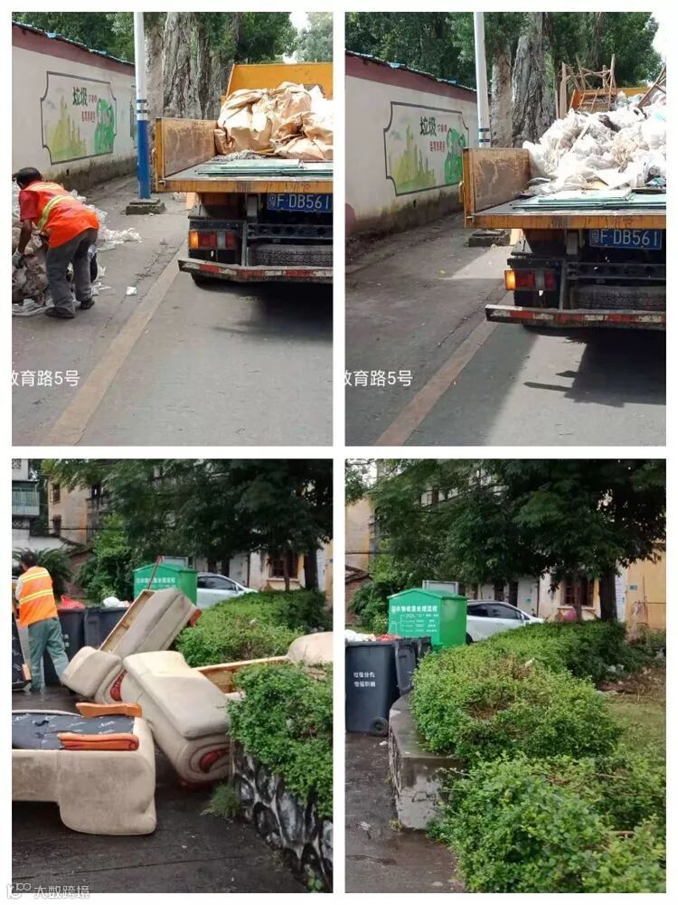 本周突击队清理县城新旧城区及县中村周边乱倒装修杂物、砖头泥沙石草树枝等大件物。协助城市管理拆下重量级广告牌胶纸及超载车辆洒漏,出动人员12位,大件车辆4台,每天拉分练场分类破解共15车,总车数105车,重量370吨。