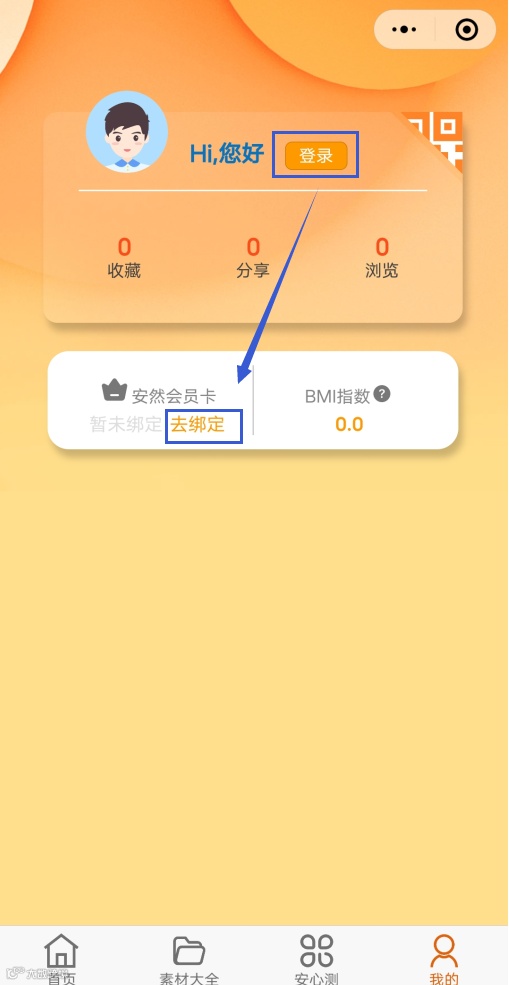 点击“我的”,登录后绑定会员卡,并设置好自己的昵称和头像~