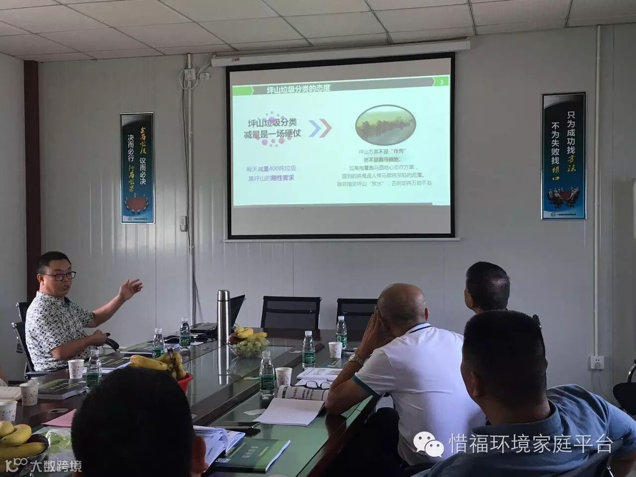 首先惜福环保扈华庚董事长对远道而来的坪山考察团表示诚挚而热烈的欢迎;接着扈董从企业的发展壮大历程、运营模式和配套技术设备、以及未来的发展规划等几个层面向坪山考察团介绍了惜福环保在垃圾源头分类及资源化利用方面做出的努力、尝试以及取得的系列成效,并现场解答考察人员的疑惑,考察团的专家和领导也对惜福环保的进一步发展提出了合理化建议。