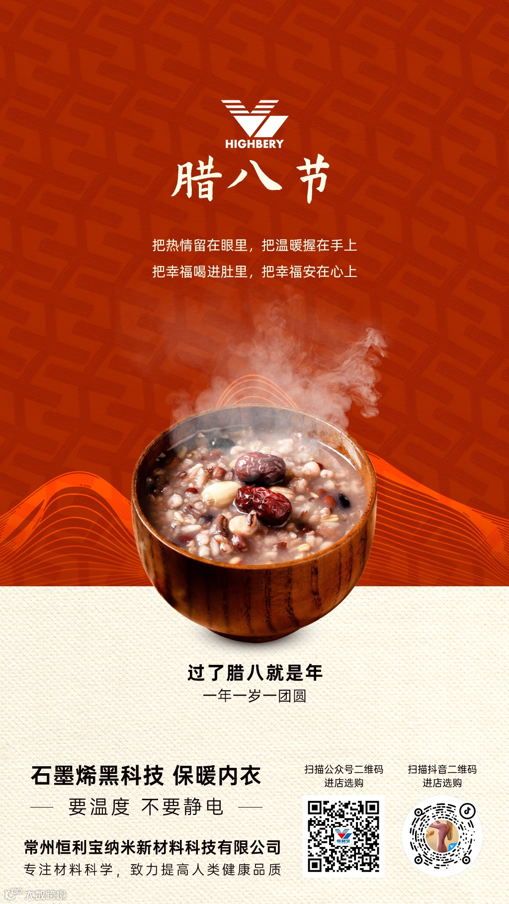 “小孩小孩你别馋,过了腊八就是年”,腊八节这天,一碗香甜的腊八粥下肚,也就意味着拉开了过年的序幕。食物带来温暖,温暖抚慰人心,这或许就是节日的意义。常州恒利宝,祝您腊八热粥暖心房,来年又是新气象!