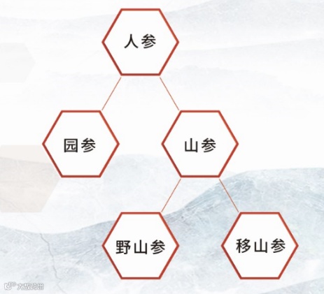 山参分为野山参、移山参。野山参是自然播种,生长于深山密林中的原生态人参,以支大、浆足、纹细、芦长、碗密、有圆芦及珍珠点者为佳;