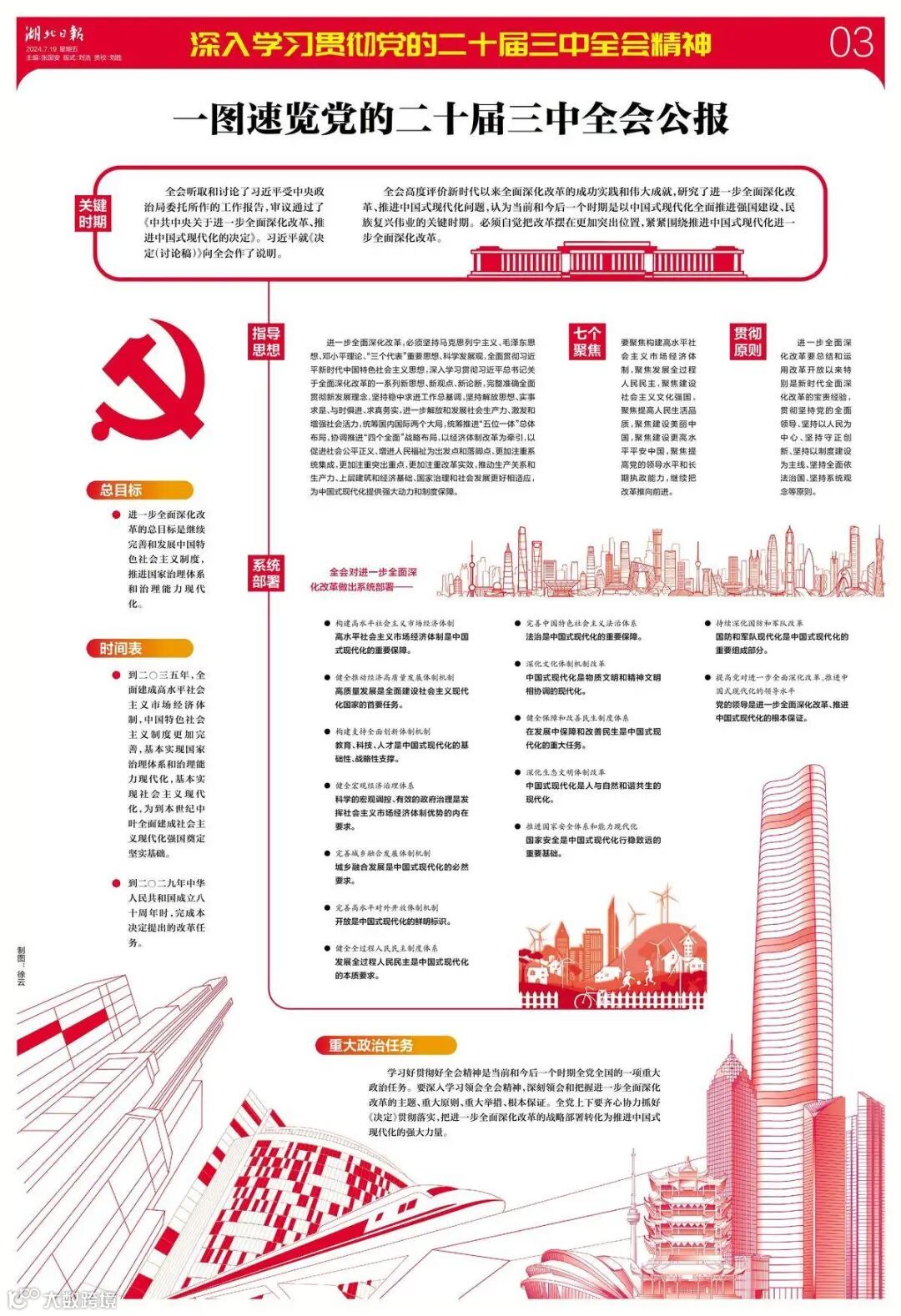 全会高度评价新时代以来全面深化改革的成功实践和伟大成就,研究了进一步全面深化改革、推进中国式现代化问题,认为当前和今后一个时期是以中国式现代化全面推进强国建设、民族复兴伟业的关键时期。必须自觉把改革摆在更加突出位置,紧紧围绕推进中国式现代化进一步全面深化改革。