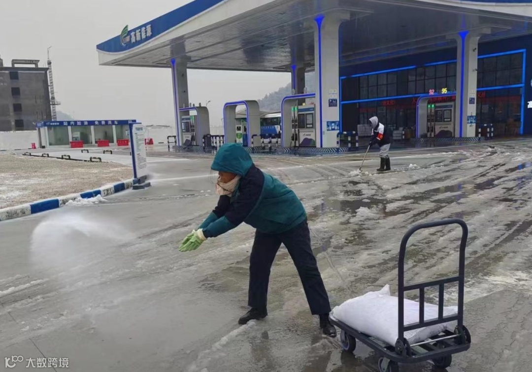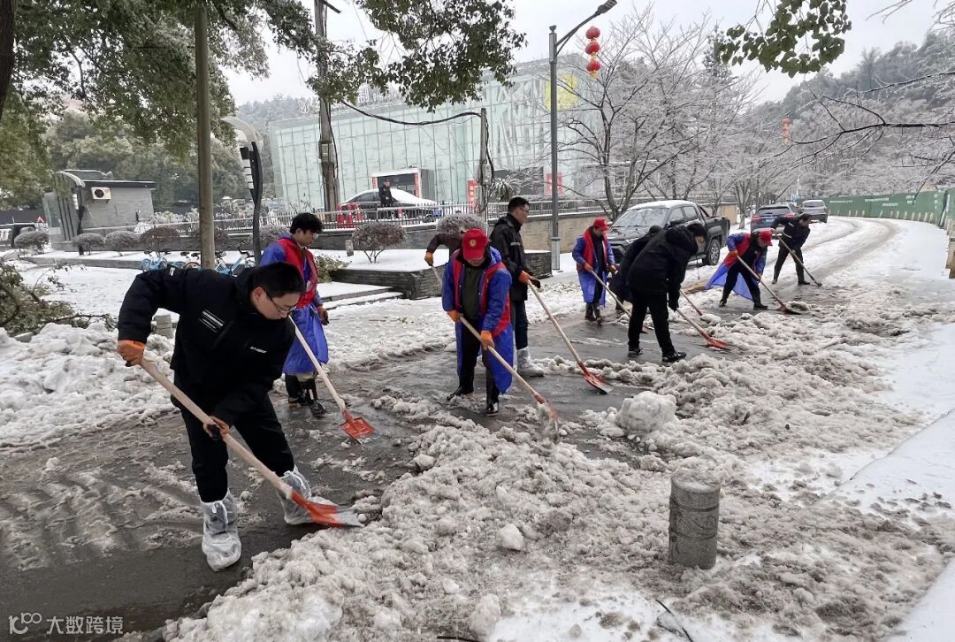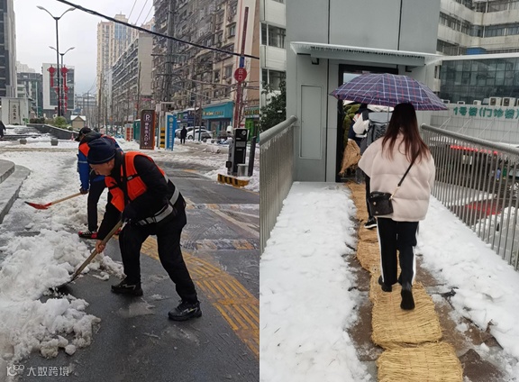 组织20多人的铲雪除冰服务队,铲除周边道路积雪,方便居民出行。在寒风冻雨中,经过大家3个小时的努力奋战,铲雪除冰突击队铲除了超过1公里的路面积雪,为路段交通畅通、行人便利贡献了国企力量。