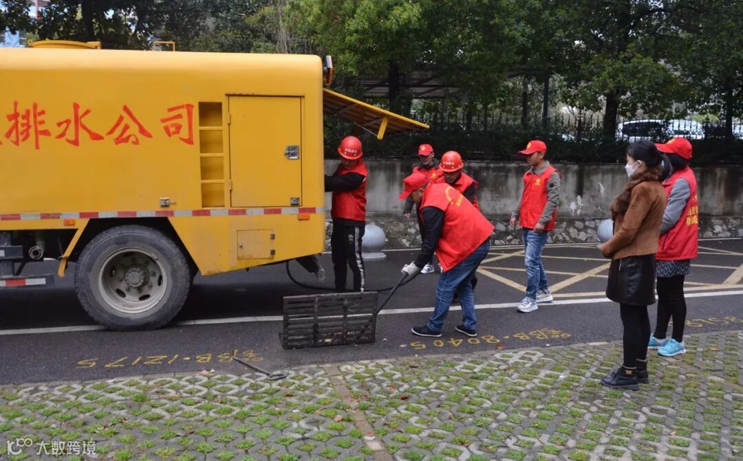 在延安岭社区工作人员的带领下,志愿服务队出动一台专业管道疏通车,对堵塞区域进行仔细勘查。经查明,堵塞原因是由于小区管道老化,化粪池未及时清掏,杂物落入下水管道,导致污水管网堵塞外溢。查明原因后,服务队迅速行动,打开污水井盖进行通风,将高压冲洗管推入管道口进行冲洗。经过2小时的疏通作业,成功疏通了三处下水管道堵塞点。