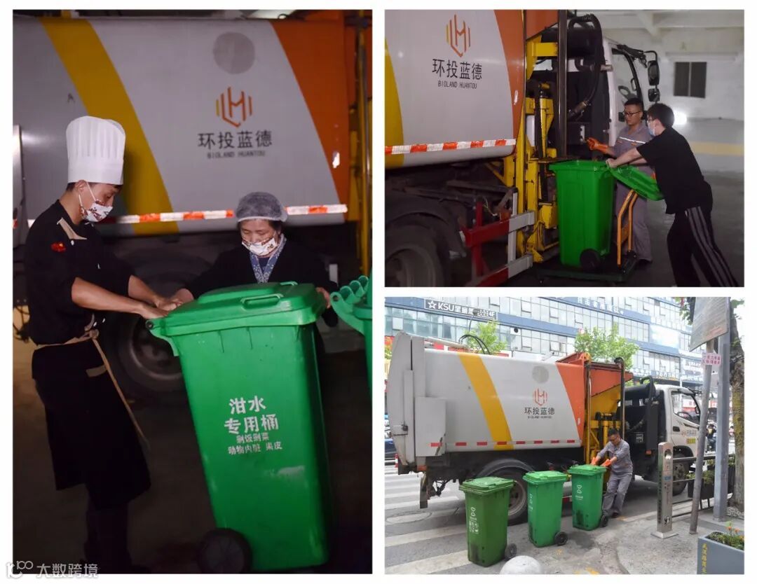▲图解:如今,市民对餐厨垃圾的回收意识越来越强,每天晚上7点以后,武汉路餐饮店工作人员都会帮助环投蓝德司机郑昌奎收运餐厨垃圾,餐厨垃圾的统一回收处置将从源头上切断“地沟油”的流通,为舌尖上的安全增加一道“过滤网”。