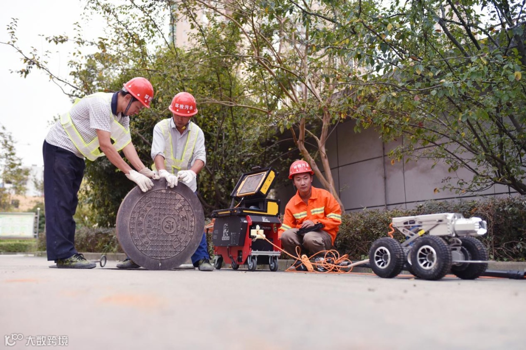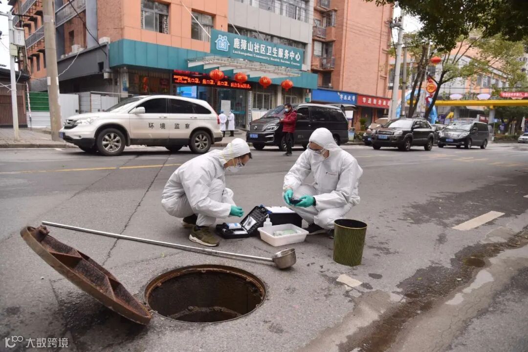 ▲图解:检测公司工作人员正在对社区卫生服务中心下水道进行水质检测