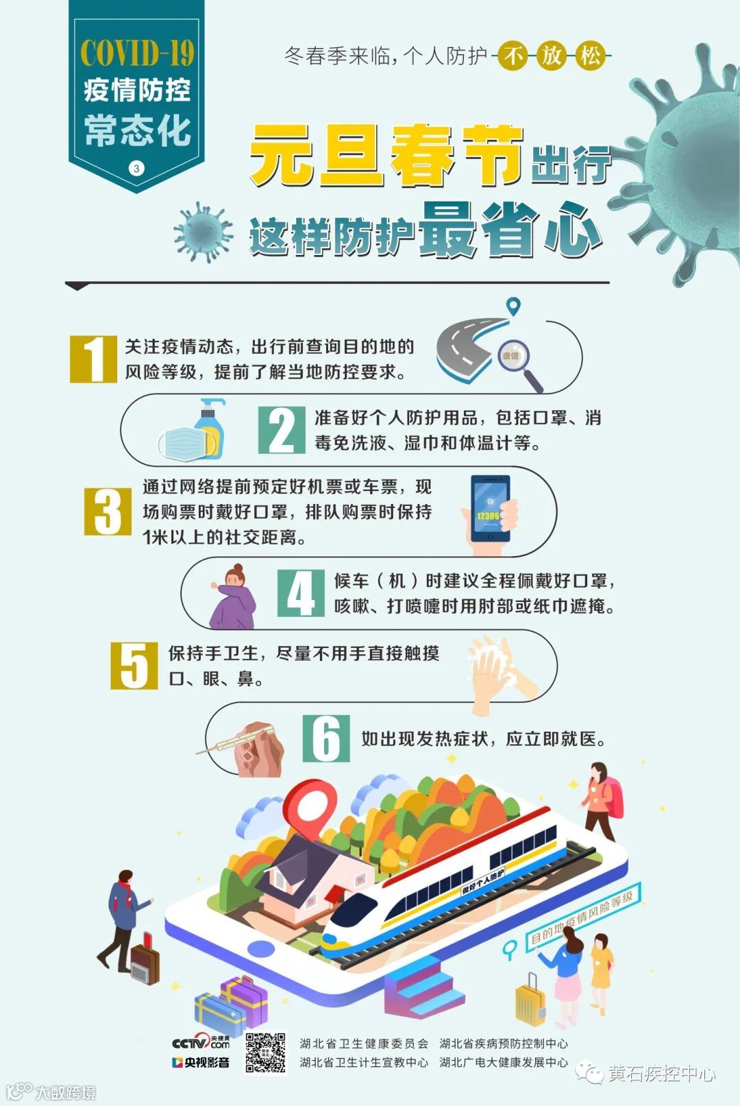 12月30日,黄石市疾控中心发布元旦春节期间市民疫情防控提醒: