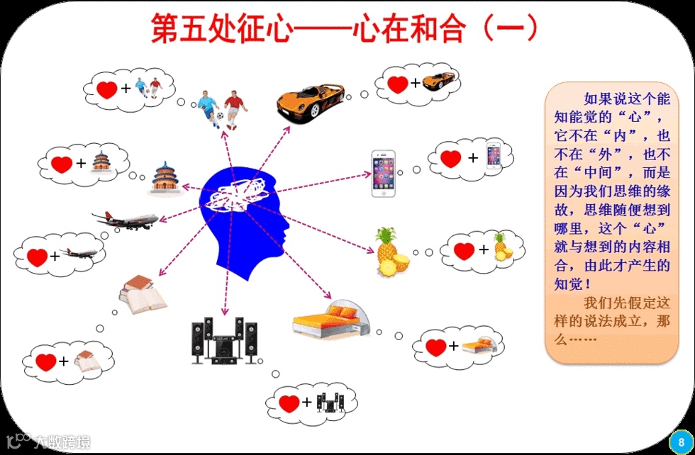 那么当其触你的头时,同时又触你的足。头有知觉,足应当不知道。但是今天你并不是这样,因此你应当知道,你刚才说的,随便想到那个事物,心就与之相合,这话是不正确的。