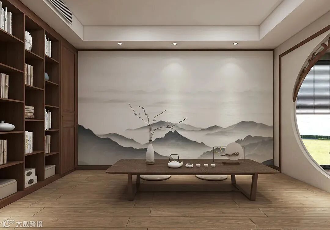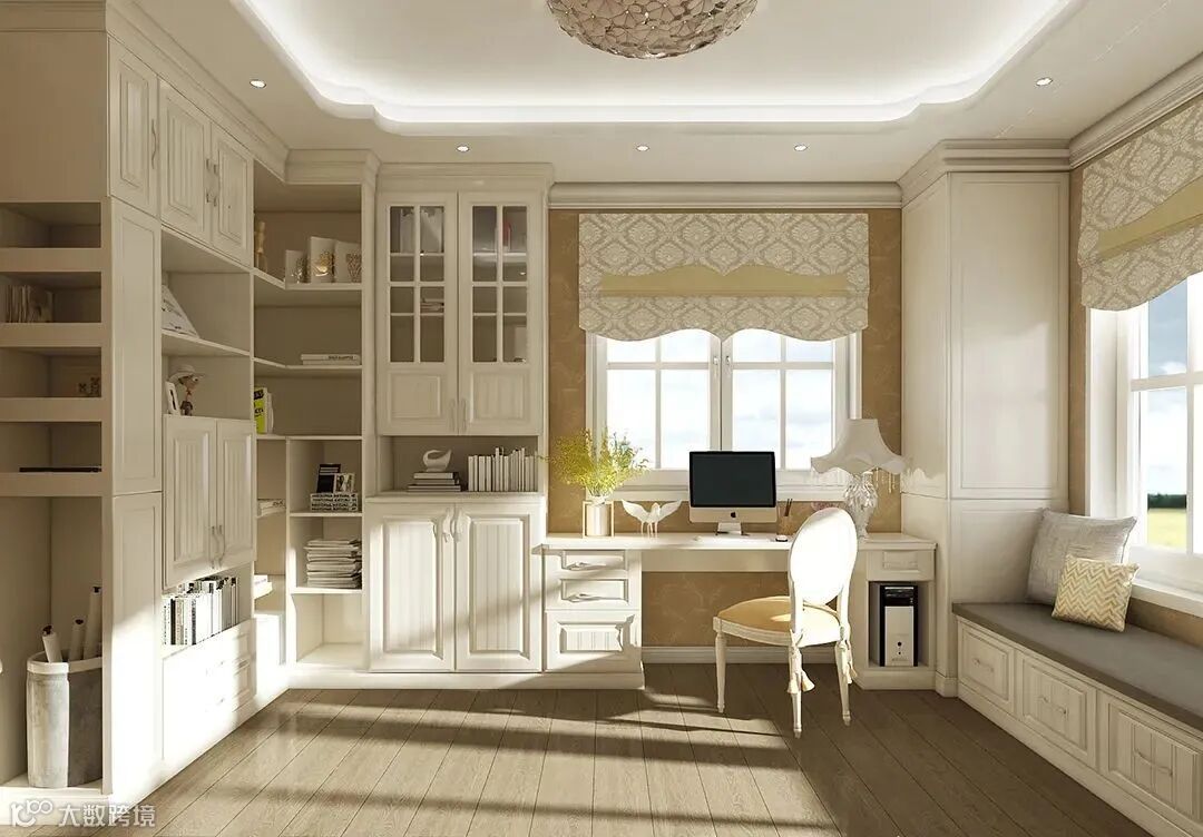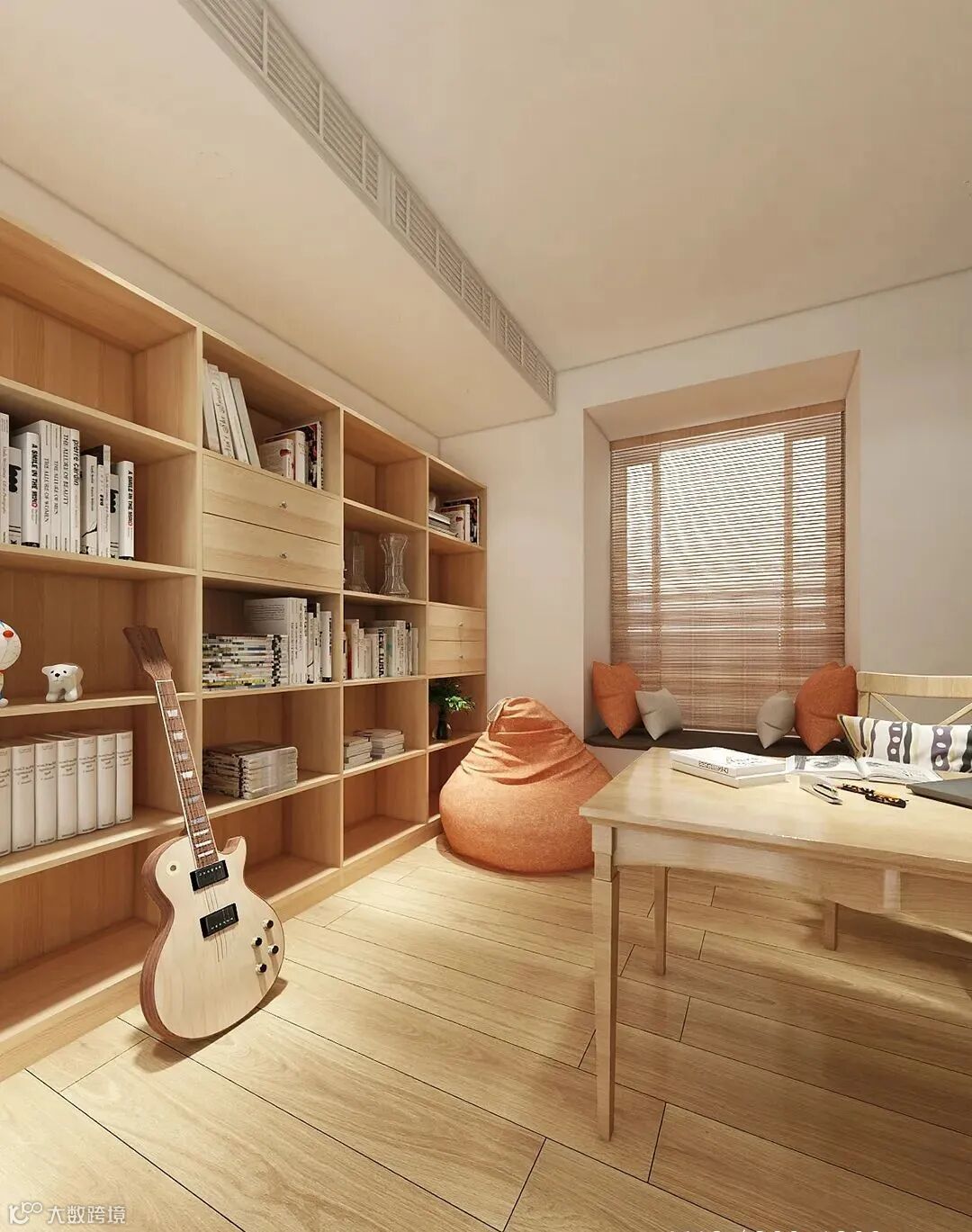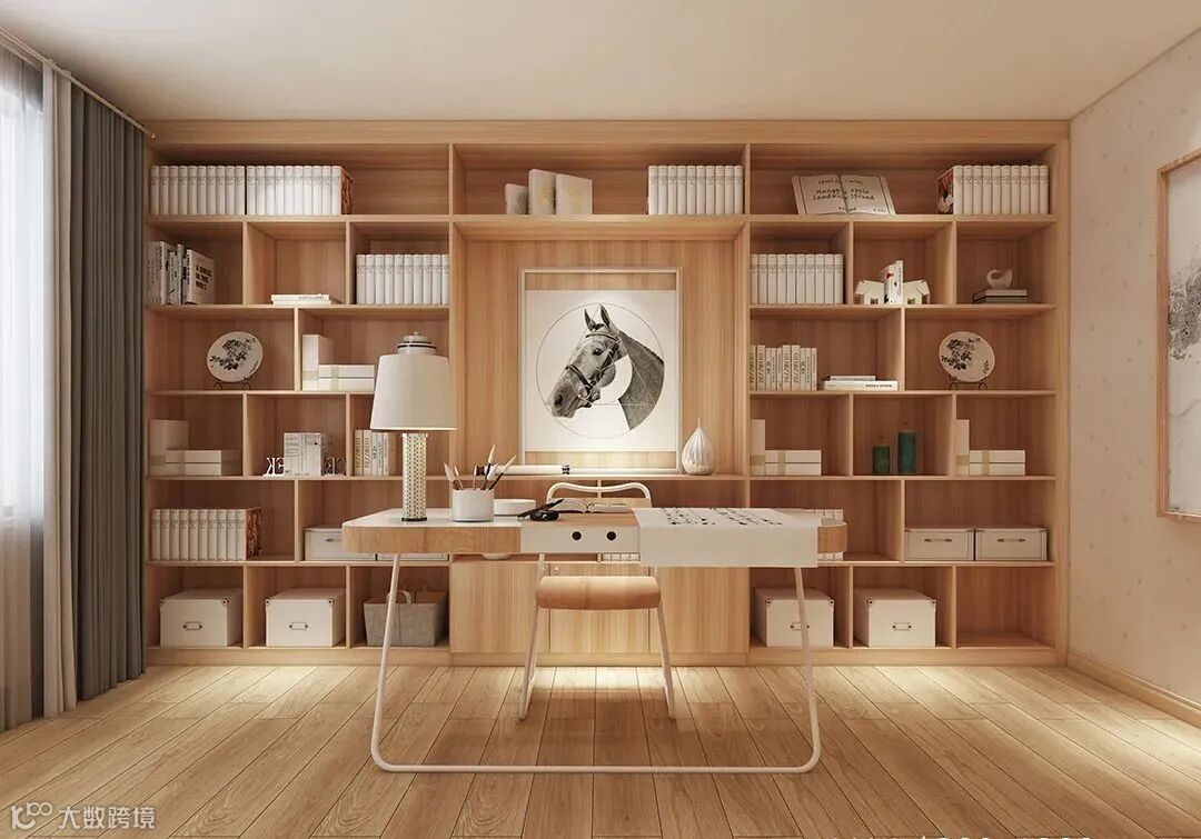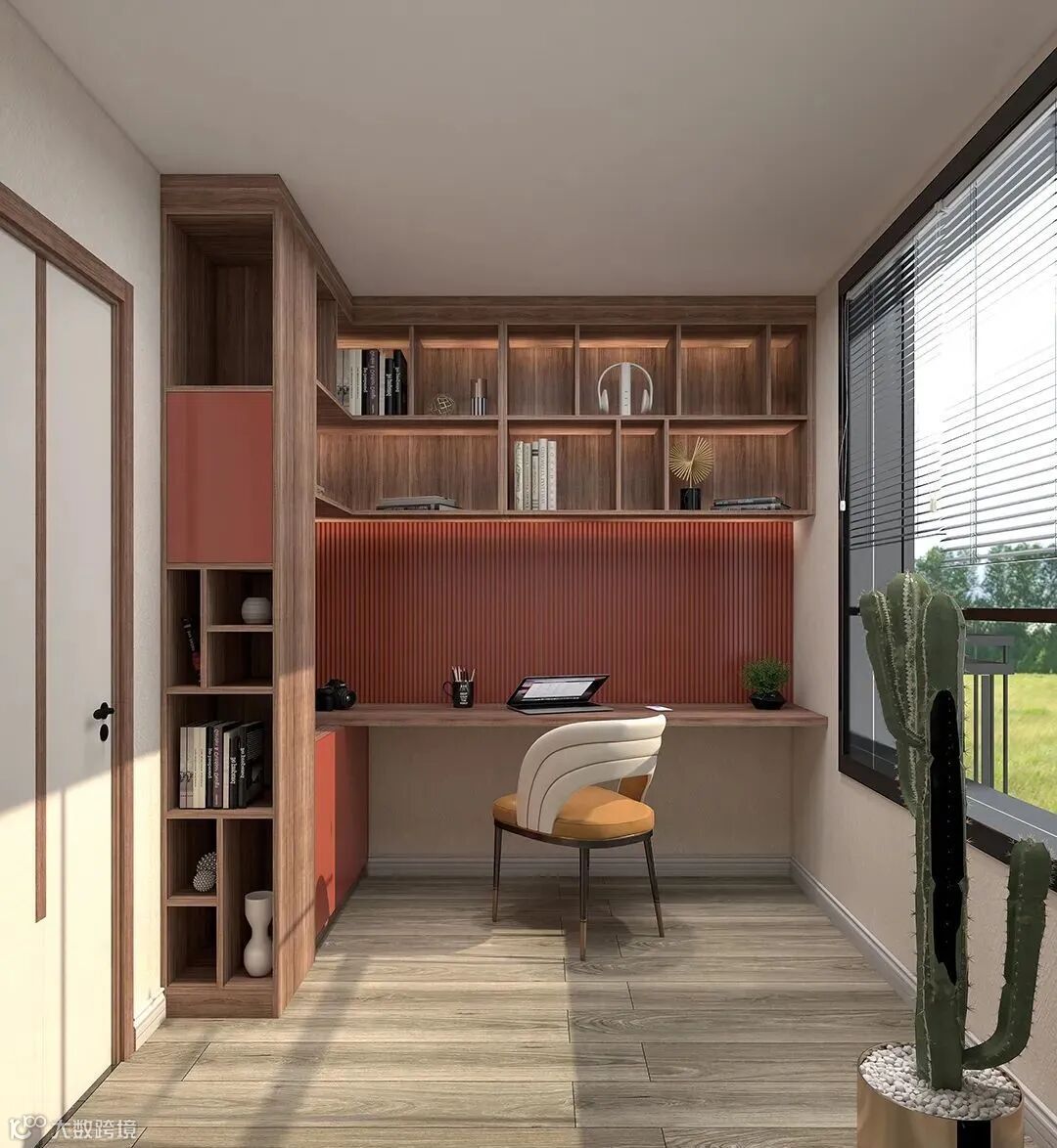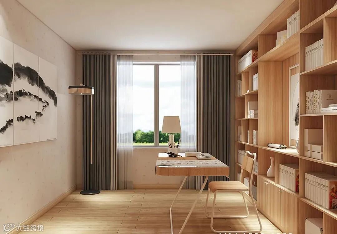 色色给大家展示了一些采用木纹砖铺贴的书房