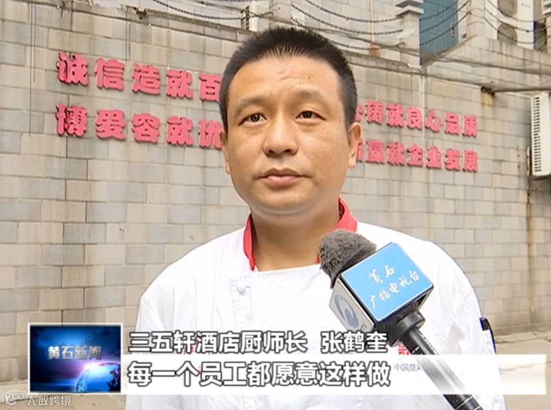 三五轩酒店厨师长张鹤奎讲道:“我们每一位员工一份担当责任,有一种意识在那里,每一个员工都愿意这样做。”