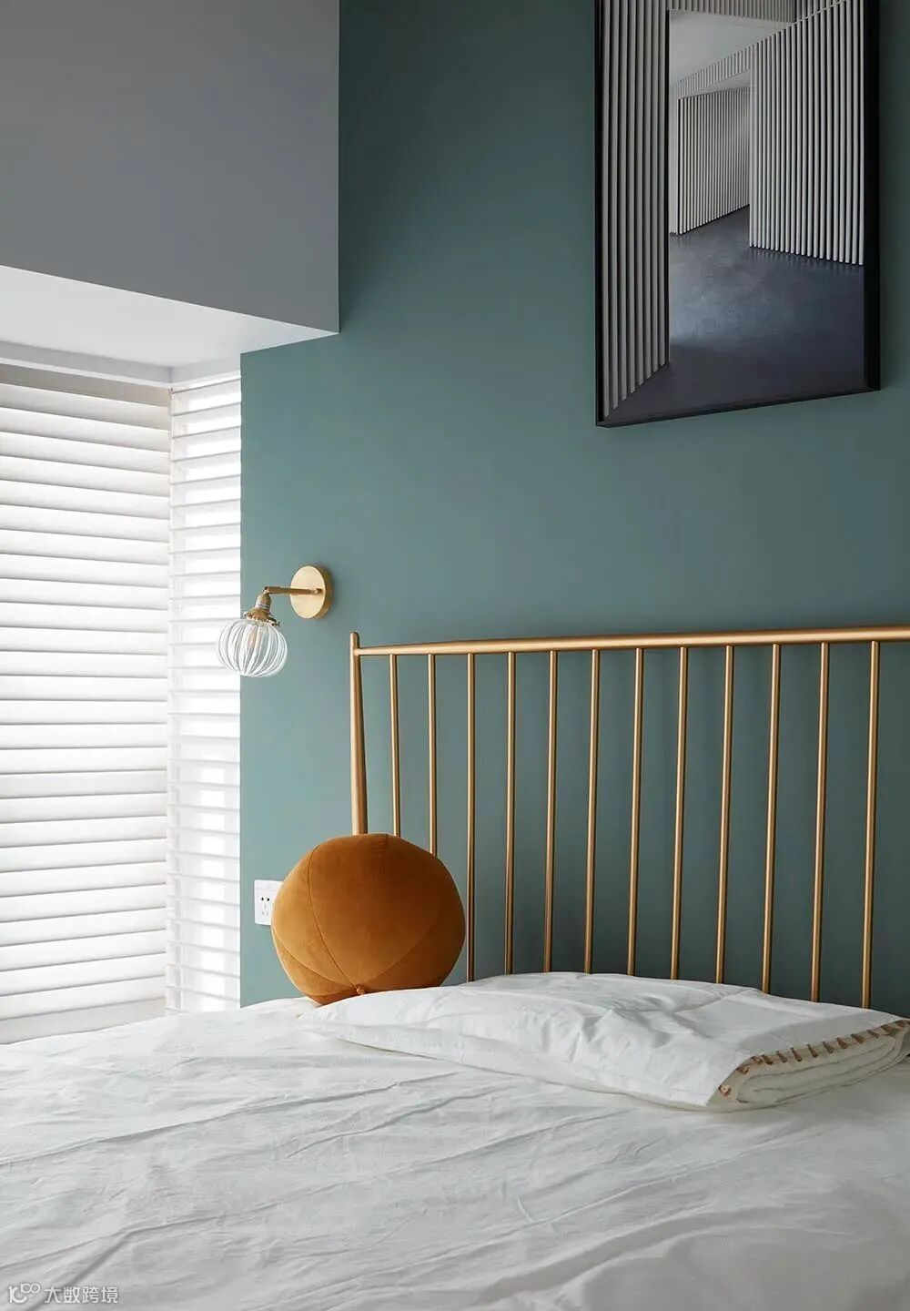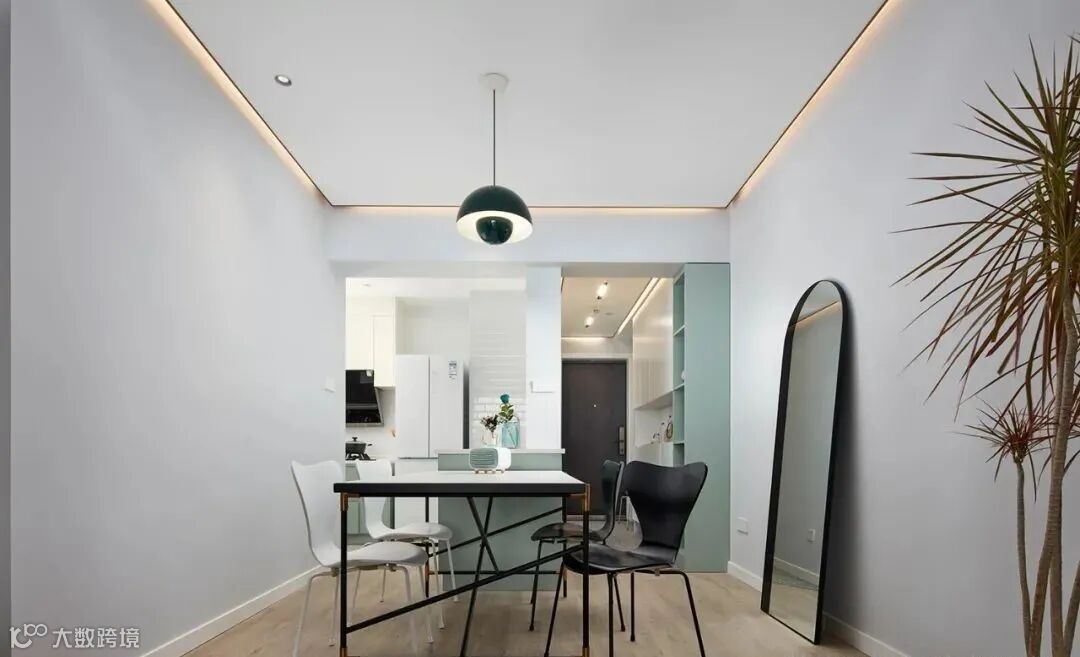 ▲ 低饱和度的配色基调搭配一面清新感背景墙,免除『纯白』带来的单调之感,空间更加温馨舒适