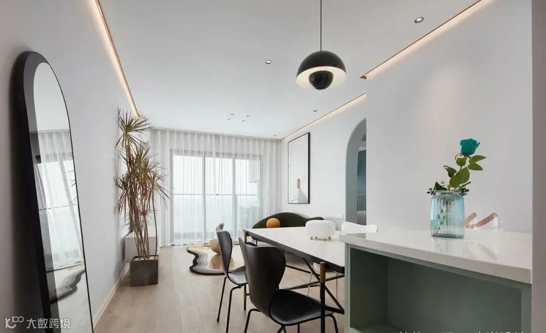 ▲ 将卫生间台盆外置于过道,莫兰迪色搭配漂亮的拱形门提升家的气质