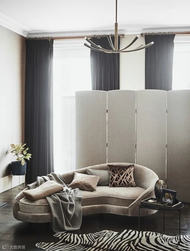 现代轻奢的目的是生活的享受,除了颜色上的协调以外,设计也是很重要的一个部分。在选择窗帘的过程中可以花一点小心思,显示出你的品味。