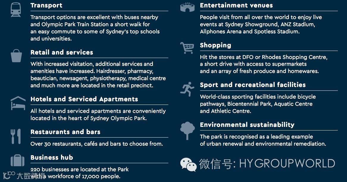 一、截至2030年奥林匹克公园总体规划完工之时,悉尼人口将增加110万,密度大大增加,奥林匹克公园将成为一个世界级的宝贵遗产:640公顷面积,相当于悉尼中央商业区的2倍,而住宅只有1400户,坐拥425公顷,占66面积的园林绿地,堪称世界之最。