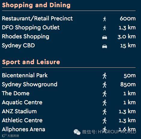 去Sydney任何一个地方都是最快的!由Olympic Park去Sydney City只要20分钟,往西去Parramatta也只是15分钟,去南的Hurstville只是15分钟,往北的North Sydney也是15分钟,正正它是位置于Sydney的中心点,没有什么地方是不方便的!而且Olympic Park的公共交通工具也只是在楼下,巴士站在家的楼下,每11分钟一班车到Burwood, Strathfield, Homebush等地,火车也只5分钟路程。交通绝对是超方便!