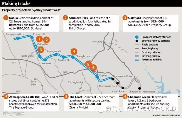 西北增长中心的强劲发展无疑首先得益于西北铁路的建设,这条总投资83亿澳元的铁路是悉尼乃至整个澳洲近年以来最大的一笔交通投资。这条铁路将最晚于2019年上半年正式通车运行。