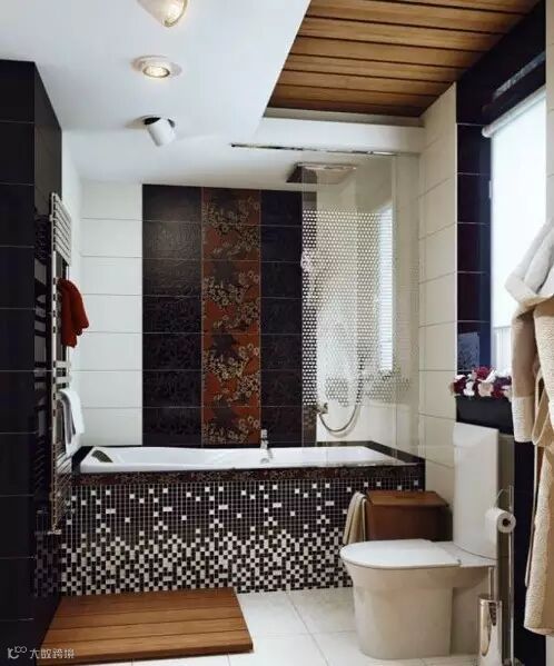 一是直接起美观作用。卫生间为了美观效果,可以考虑腰线上下分色,或者上下分贴,上面斜贴,下面正帖,腰线使用的位置是瓷砖规格和卫生间设施共同决定的。