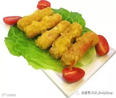 这道菜里面真的有螃蟹吗?其实它只是用白色的鱼肉做成螃蟹腿部的形状。
